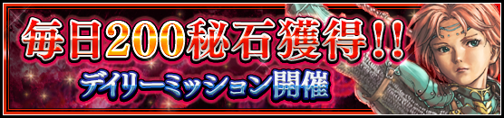 ■最大4000秘石獲得デイリーミッション開催期間 開始:2017年11月20日(月) 4:00 終了:2017年12月10日(日) 3:59 ※最大4000秘石獲得デイリーミッションの更新は毎日4:00となります。 ※通常のデイリーミッションの更新に関しては、毎日0:00に更新となります。 |