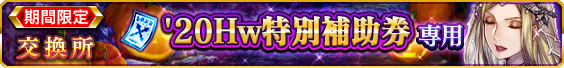 「'20Hw特別補助券専用交換所」は、「'20Hw特別補助券」を必要枚数貯める事でアーティファクトなどのアイテムと交換できる交換所です。