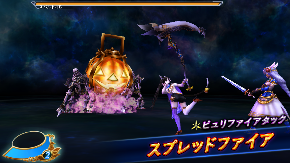【初めてのハロウィン(変化)】 攻撃力が大幅に上昇し、闇属性で与えるダメージが格段に上昇する 【楽しむ姿勢(成長)】 全ての攻撃で与えるダメージが上昇し、クリティカル時にHPが回復する 【皆でワイワイ(豊穣)】 味方全員の全能力が上昇し、特定ターン時には大幅に上昇する |