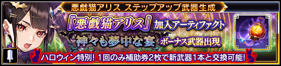 ■『悪戯猫アリスAF出現武器生成』実施期間 開始:2020年10月12日(月) 18:00 終了:2020年10月26日(月) 13:59 |