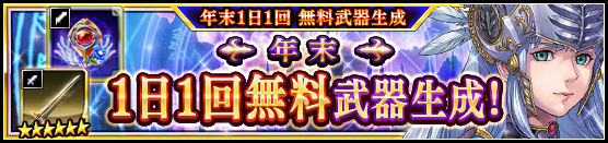これを記念し、2020年12月21日(月) 0:00より、「年末 1日1回無料武器生成 第2弾」を実施いたします。