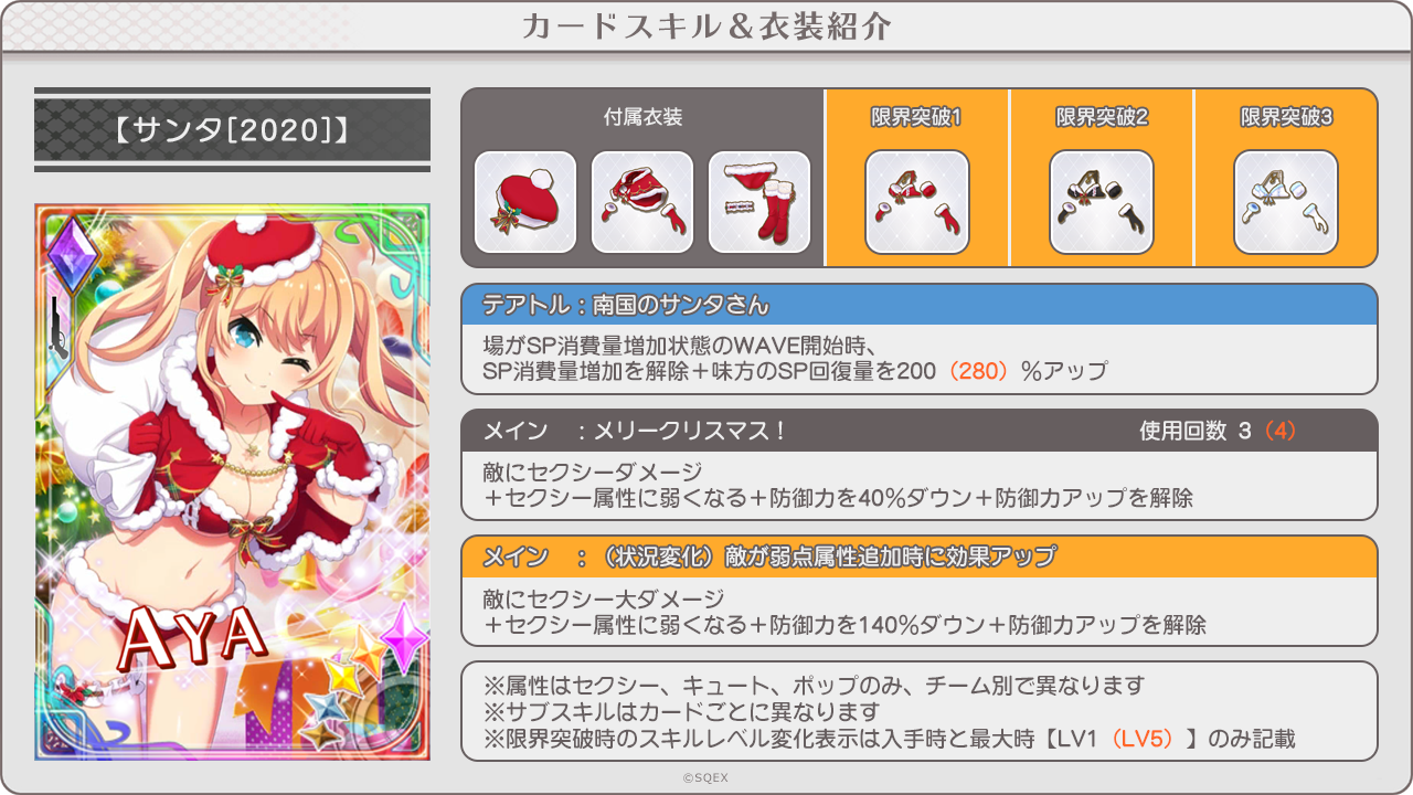 ※【サンタ[2020]】の属性はすべてセクシー/キュート/ポップとなります。
