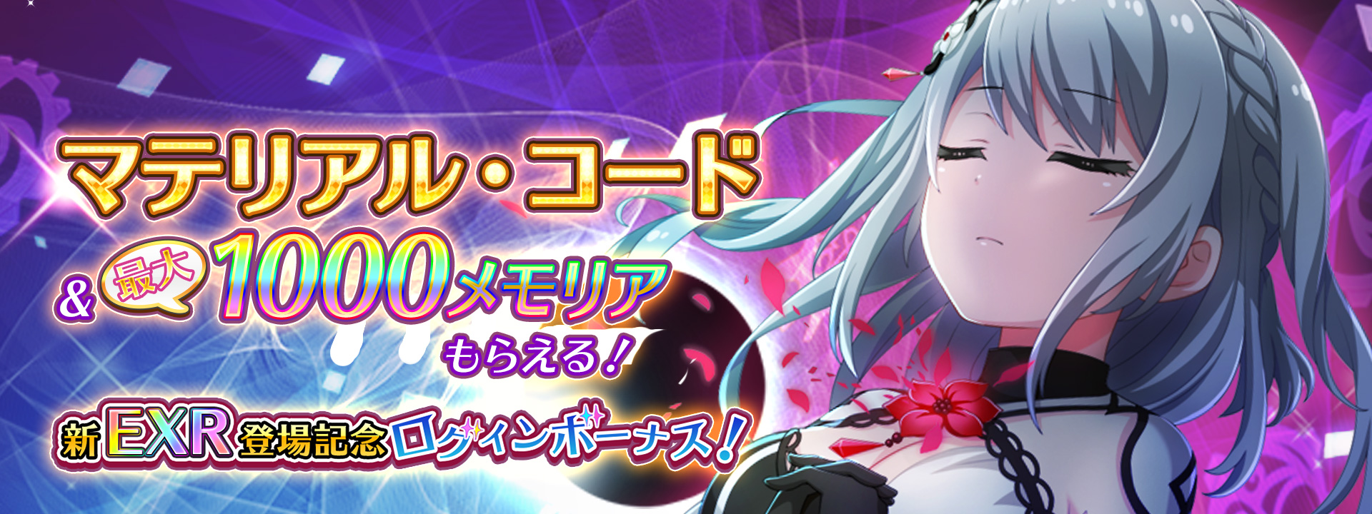 7/2より最大1000メモリア+マテリアル・コードが入手できる「新EXR登場記念ログインボーナス」を開催!