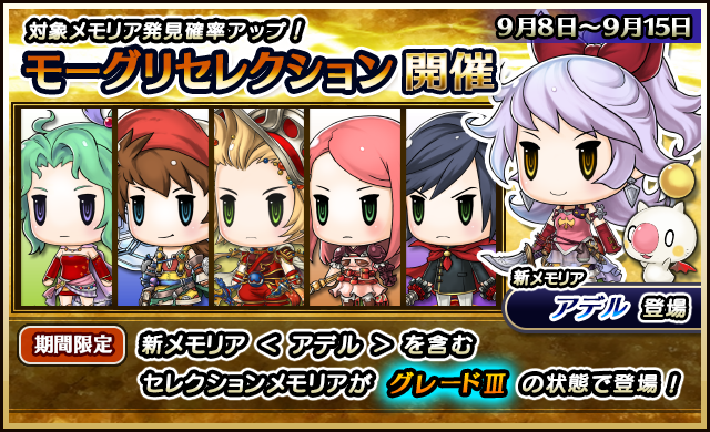 「モーグリセレクション」の対象に選ばれた以下のメモリアの発見確率が上昇いたします。