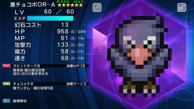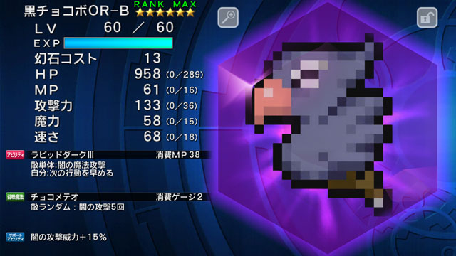 黒チョコボORは、AとBでそれぞれ異なるサポートアビリティを持っています!(★6で解放)
