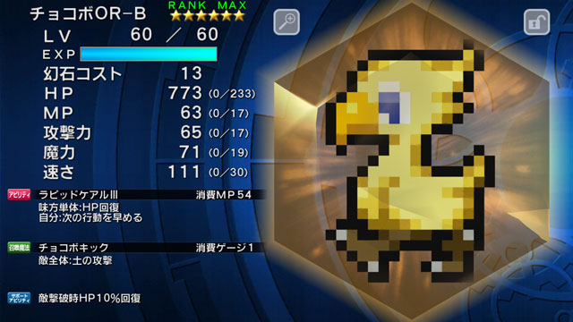 「チョコボOR-A」と「チョコボOR-B」は、それぞれ同じ幻石★4と合わせることで★6までランクアップでき、サポートアビリティも解放!