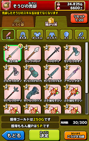 「預かり所」に預けた状態でも、ぶきやぼうぐを売ることができます。