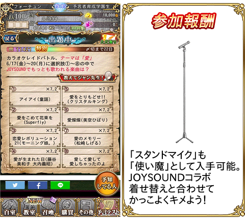 毎週異なる「JOYSOUNDコラボ着せ替え」と、見事に予知が的中した際には、