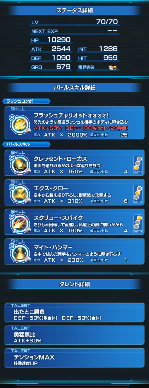 味方全体の攻撃力を上げるラッシュコンボを先行して使うことによりさらに強力なダメージ量を発生させることができます。