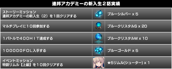 ※上記は『「連邦アカデミーの新入生」 第1~3話』で開放される実績と報酬です。