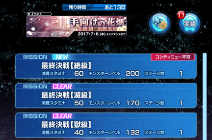 実施期間中に、『獄級』をクリアすると『滅級』が解放され、さらに『滅級』をクリアすると『絶級』が開放されます。