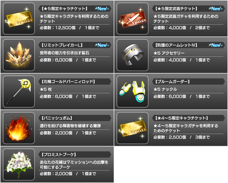 6/22(木)より、ブライトブロッサム【黄】交換所に以下の交換可能アイテムを追加しました!