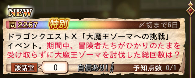 1.予言者育成学園で出題中のDQXコラボ特別問題[問2267]に参加!