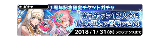 1周年を記念し、厳選した★5キャラ12人の中から1人をプレゼント!