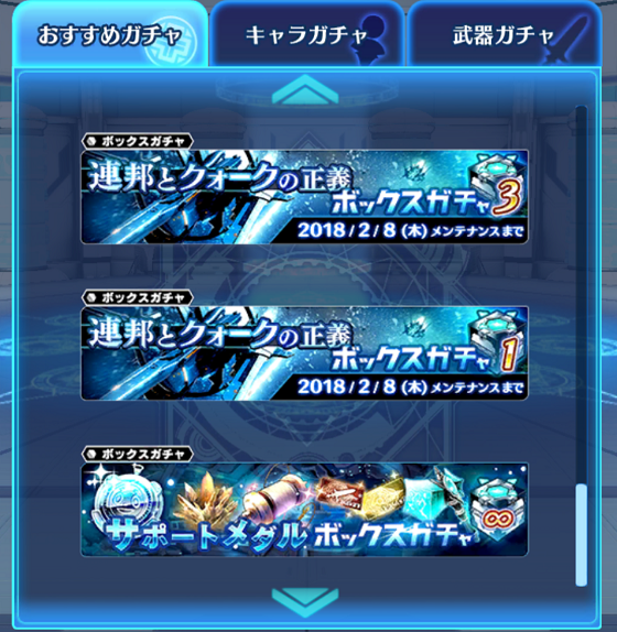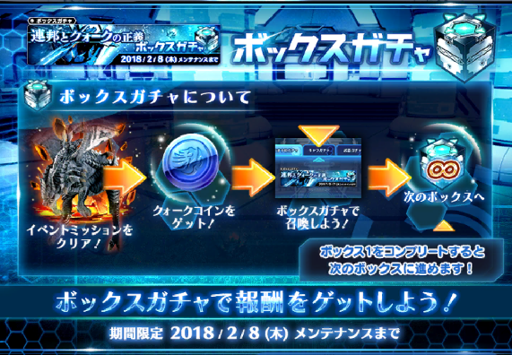 『連邦とクォークの正義ボックスガチャ』は、2/8(木)メンテナンスまでご利用が可能です。