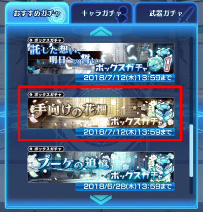 手向けの花畑ボックスガチャは、イベント終了後の1週間後である7/12(木)メンテナンスまでご利用が可能です。