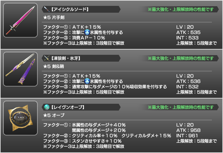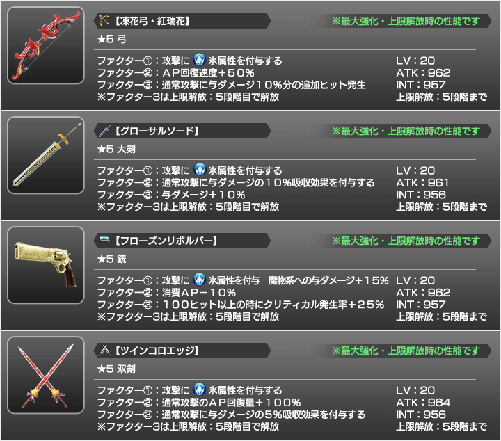 ミカエルは「氷属性」が弱点のため、「氷属性武器」を装備した状態の与ダメージが大幅にアップします。