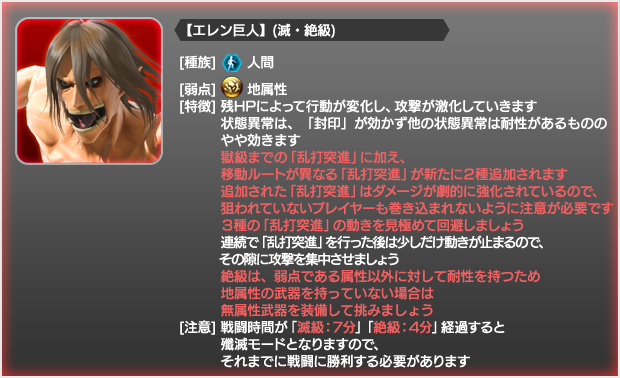 進撃の巨人コラボイベント『壁なき世界に響く咆哮』の『滅級』と『絶級』についてお知らせ致します。