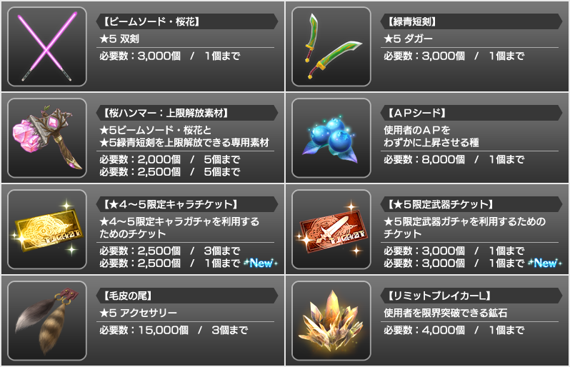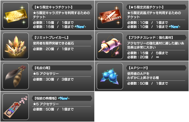 今回のイベントより以下のアイテムが追加されています。