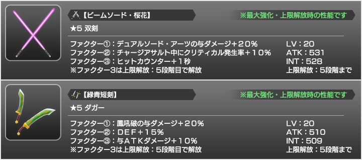 『ビームソード・桜花』『緑青短剣』は、『桜コイン』との交換で入手できます。