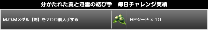 各ミッションをクリアすることで、難易度に応じて『M.O.Mメダル【剣】』を入手することができます。