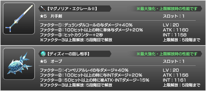 『マグノリア・エクレール『ディズィーの話し相手』を上限解放させるためには、『M.O.Mメダル【剣】交換所』または上級以降のバトルミッションクリアドロップから入手できる『神器H【青】:上限解放素材』が必要となります。