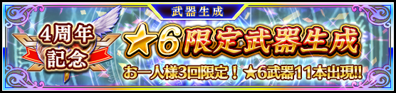 ※『4周年記念 ★6限定武器生成』は期間中3回限りご購入いただけます。