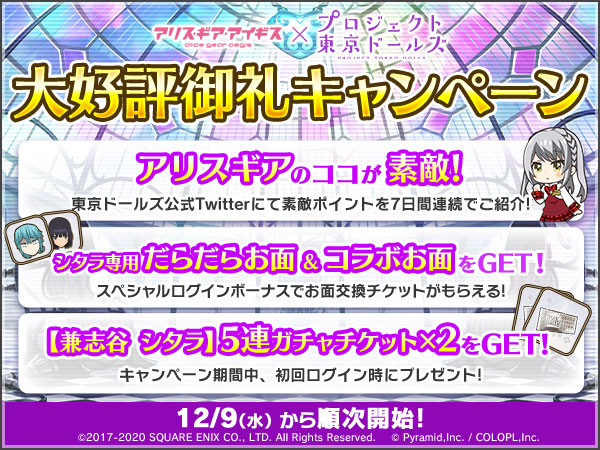 「アリスギア&東京ドールズ」コラボ大好評御礼キャンペーンと題しまして
