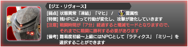 降臨イベント『SO1イベント(後編)ジエ・リヴォースを打倒せよ!』の内容および開催期間をお知らせ致します。