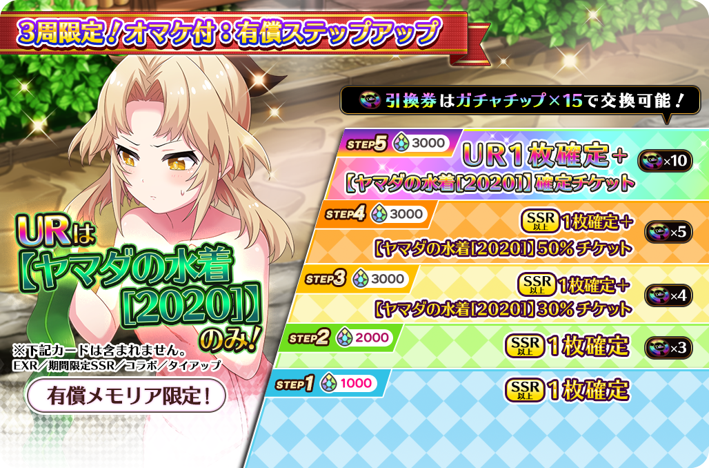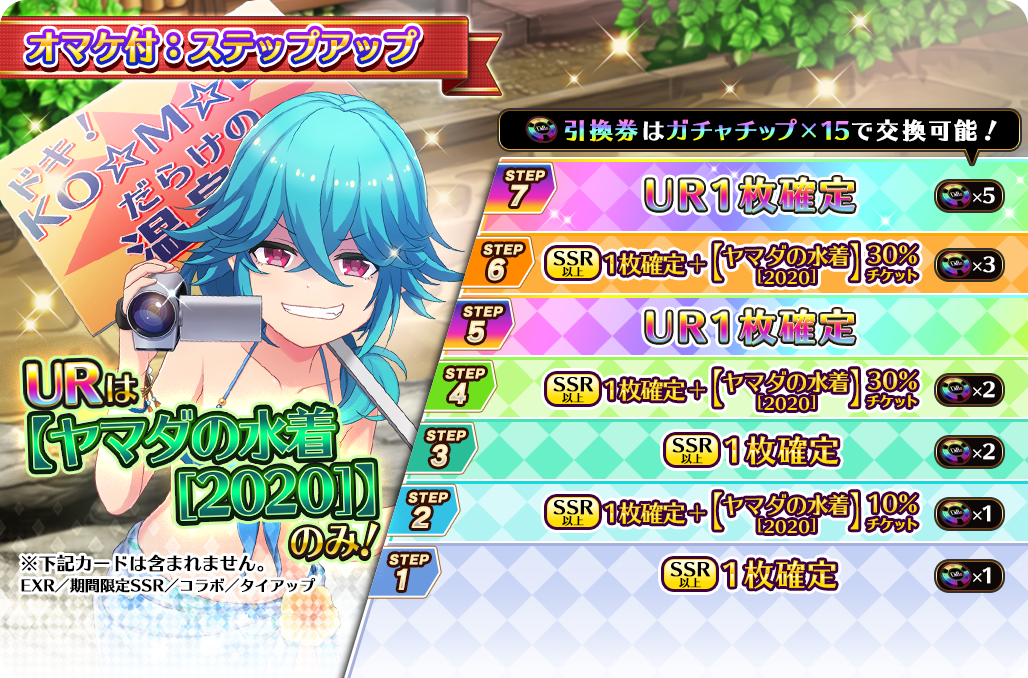 | STEP5 | UR1枚確定! | ×10 | 【ヤマダの水着[2020]】確定チケ |