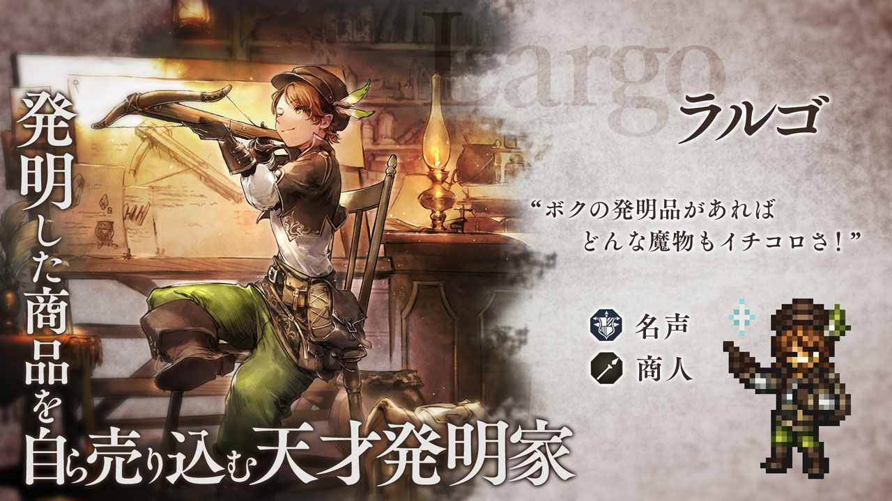 | 「ラルゴの物語」 | ・メインストーリー「富を極めし者」、「権力を極めし者」、「名声を極めし者」、「全てを極めし者」をすべてクリアし、「名声を授けし者」を2章までクリアする。 ・「闘技大会 - ラルゴ杯- 」を優勝して“ラルゴ”を入手する。 上記を達成することで、“ラルゴ”のトラベラーストーリー序章が解放されます |