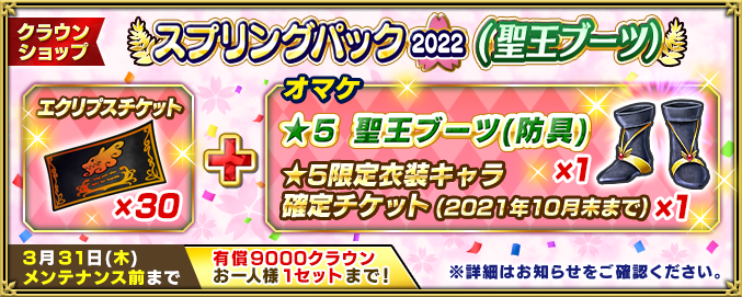 ●スプリングパック2022(聖王ブーツ)の内容 ※有償クラウン限定