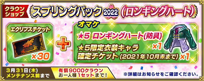 ●スプリングパック2022(ロンギングハート)の内容 ※有償クラウン限定