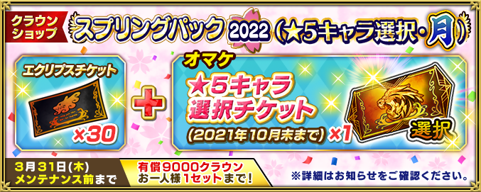 ●スプリングパック2022(★5キャラ選択・月)の内容 ※有償クラウン限定