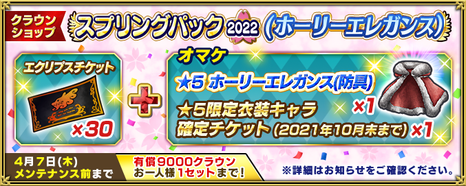 ●スプリングパック2022(ホーリーエレガンス)の内容 ※有償クラウン限定