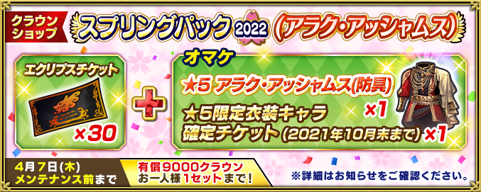 ●スプリングパック2022(アラク・アッシャムス)の内容 ※有償クラウン限定