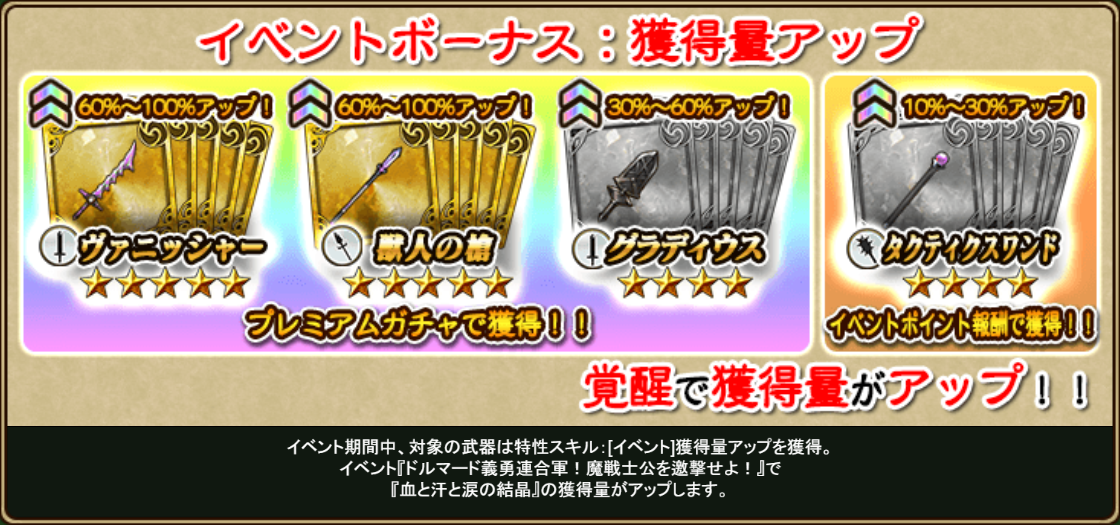 ※イベント『ドルマード義勇連合軍!魔戦士公を邀撃せよ!』で『血と汗と涙の結晶』『血と汗と涙の結晶・金』