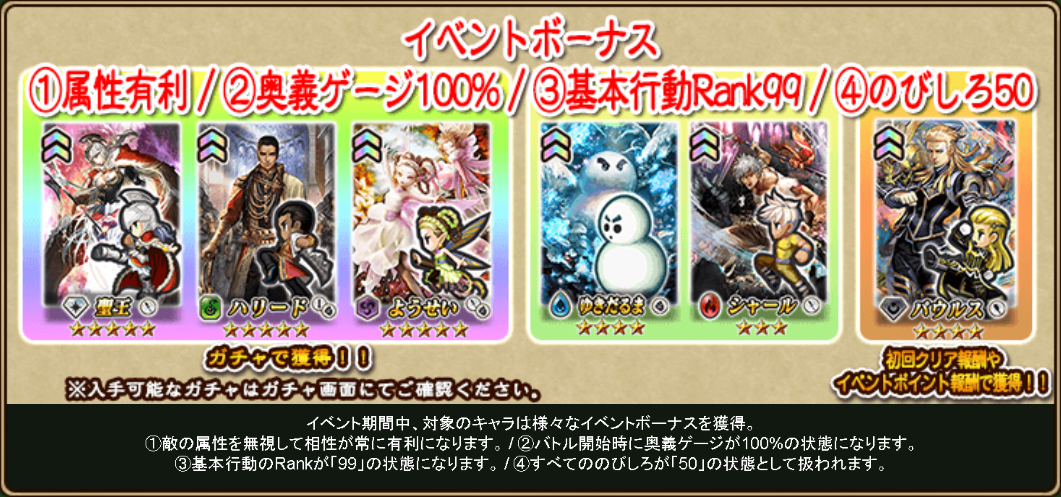 ・期間中、対象のキャラや武器はイベント攻略に役立つ特性スキルを