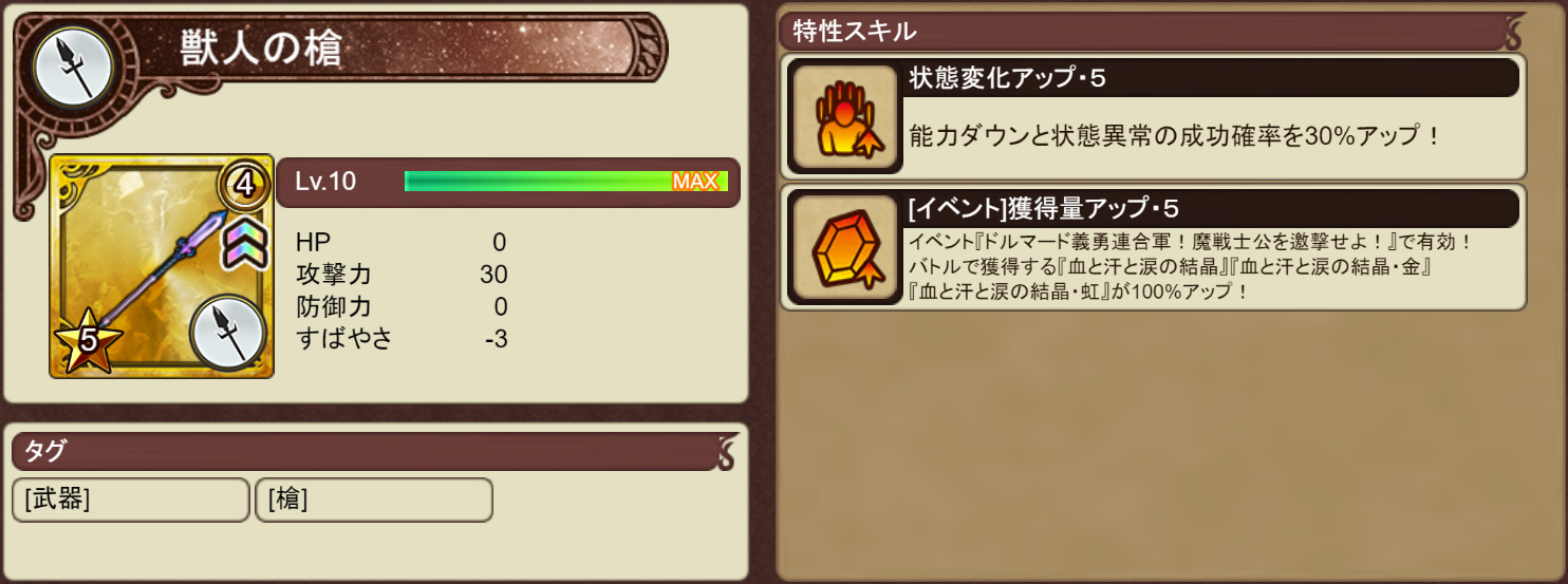 ・★5 獣人の槍 [槍] 獲得量60%~100%アップ!