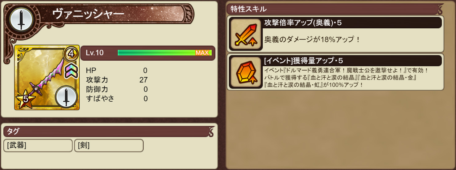 ※イベント『ドルマード義勇連合軍!魔戦士公を邀撃せよ!』で『血と汗と涙の結晶』『血と汗と涙の結晶・金』