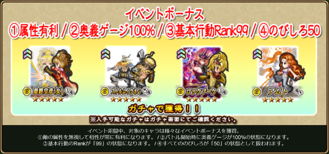 ・期間中、対象のキャラはイベント攻略に役立つ特性スキルを一時的に獲得します。