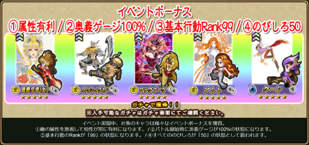 ・期間中、対象のキャラはイベント攻略に役立つ特性スキルを一時的に獲得します。