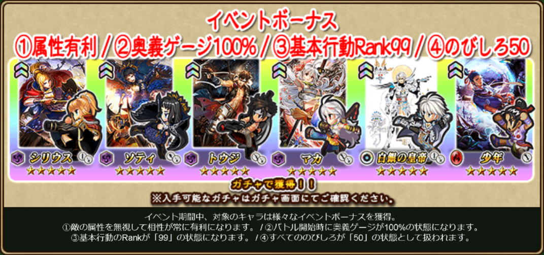 ・期間中、対象のキャラはイベント攻略に役立つ特性スキルを一時的に獲得します。