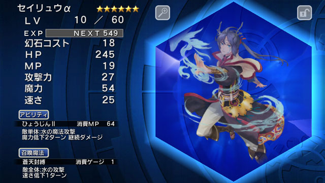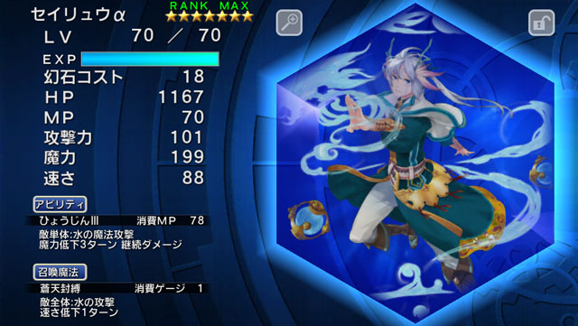 召喚魔法:「蒼天封縛」敵全体:水の攻撃 速さ低下1ターン