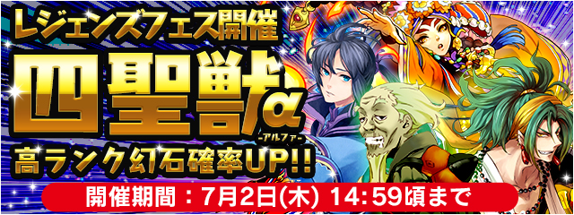 メインストーリーでも活躍する「四聖獣」の人間界バージョンがフェス期間限定の新たな幻石として追加されました!★5以上ですので、こちらも召喚確率大幅アップの対象となります。