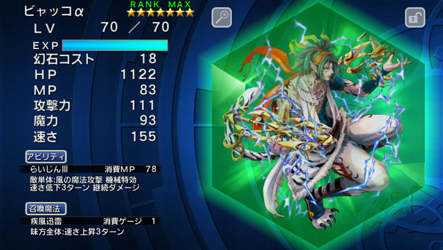 アビリティ:「らいじん」敵単体:風の魔法攻撃 機械特効 速さ低下1~3ターン 継続ダメージ