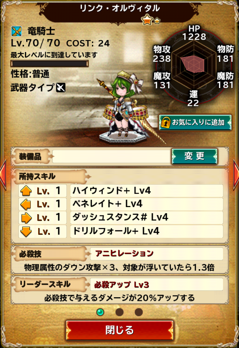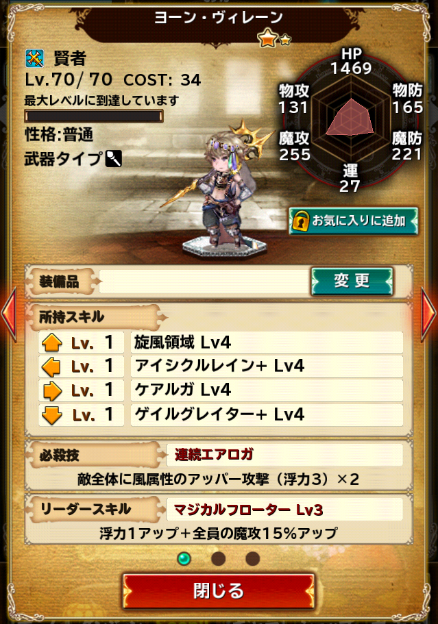 | 旋風領域 | 1回だけ属性ダメージ半減+ターン終了時に味方の風属性攻撃アップ | |