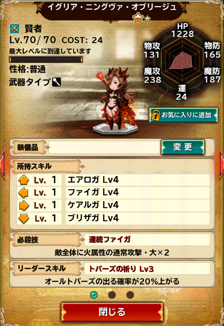 | トリリベンジ+ | 攻撃を受けると35%の確率で味方全体の火・雷・土の攻撃アップ | |
