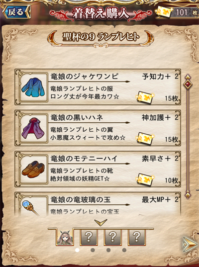 『コスプレチケット』を集めて、枚数に応じて、好きな衣装と交換が出来ます。