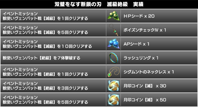 インアンとのコラボイベント『双璧をなす断鎖の刃』の『滅級』と『絶級』についてお知らせ致します。